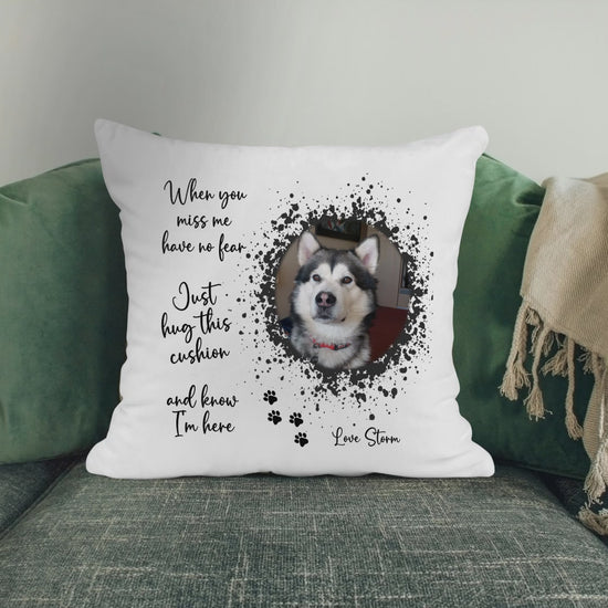 Honour your beloved pet with our When you miss me have no fear V3 Pet Memorial Cushion. Keep their memory close with this soft and comforting tribute. Perfect for cuddling or as a decorative piece, this cushion serves as a daily reminder of the love and joy your pet brought into your life.